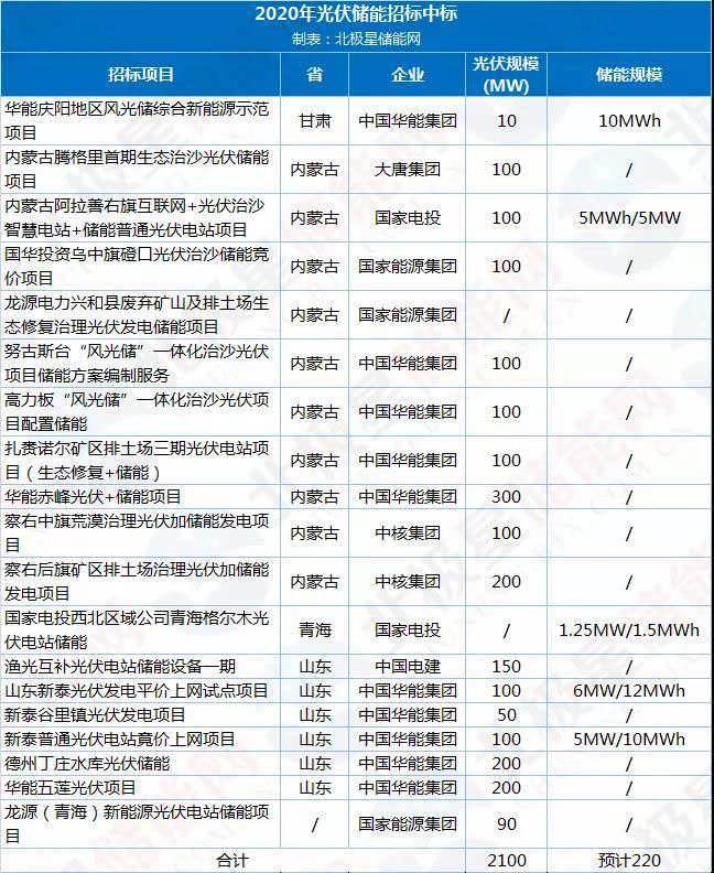 內(nèi)蒙古《2020年光伏發(fā)電項(xiàng)目競(jìng)爭(zhēng)配置方案》,明確優(yōu)先支持光伏+儲(chǔ)能項(xiàng)目建設(shè),儲(chǔ)能配置容量不低于5%、時(shí)長(zhǎng)在1小時(shí)以上;國(guó)網(wǎng)山東在《關(guān)于2020年擬申報(bào)競(jìng)價(jià)光伏項(xiàng)目意見(jiàn)的函》中,申報(bào)項(xiàng)目需承諾按裝機(jī)規(guī)模20%考慮配置儲(chǔ)能,儲(chǔ)能時(shí)間2小時(shí)。