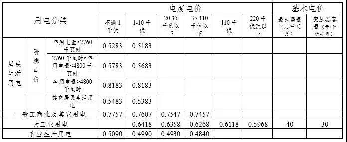 某省同期銷售電價目錄表
