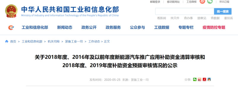 按照財政部、工業(yè)和信息化部、科技部、發(fā)展改革委《關(guān)于2016-2020年新能源汽車推廣應(yīng)用財政支持政策的通知》(財建〔2015〕134號)、《關(guān)于2015年度新能源汽車推廣應(yīng)用補(bǔ)助資金清算工作的補(bǔ)充通知》(財辦建〔2016〕115號)、《關(guān)于調(diào)整新能源汽車推廣應(yīng)用財政補(bǔ)貼政策的通知》(財建〔2016〕958號)、《關(guān)于調(diào)整完善新能源汽車推廣應(yīng)用財政補(bǔ)貼政策的通知》(財建〔2018〕18號)、《關(guān)于開展2018及以前年度新能源汽車推廣應(yīng)用補(bǔ)助資金清算的通知》(財辦建〔2019〕87號)和《關(guān)于進(jìn)一步完善新能源汽車推廣應(yīng)用財政補(bǔ)貼政策的通知》(財建〔2019〕138號)等文件要求,工業(yè)和信息化部裝備工業(yè)一司委托工業(yè)和信息化部通信清算中心,開展了2018年度、2016年及以前年度新能源汽車推廣應(yīng)用補(bǔ)助資金清算審核和2018年度、2019年度補(bǔ)助資金預(yù)撥審核工作。
