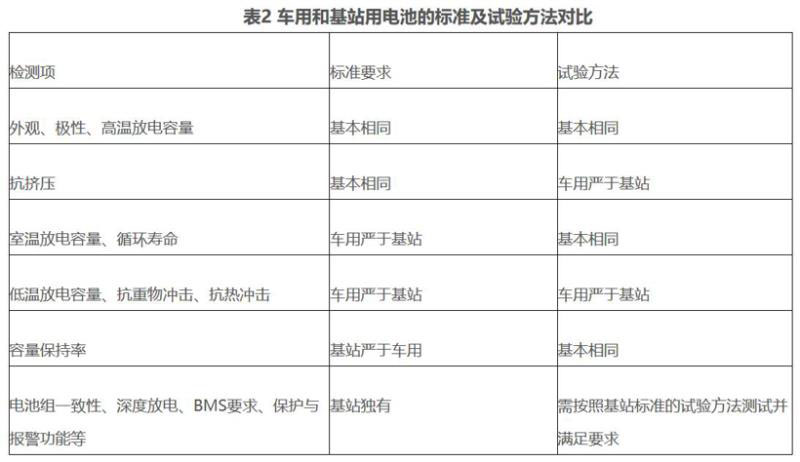 表2 車(chē)用和基站用電池的標(biāo)準(zhǔn)及試驗(yàn)方法對(duì)比