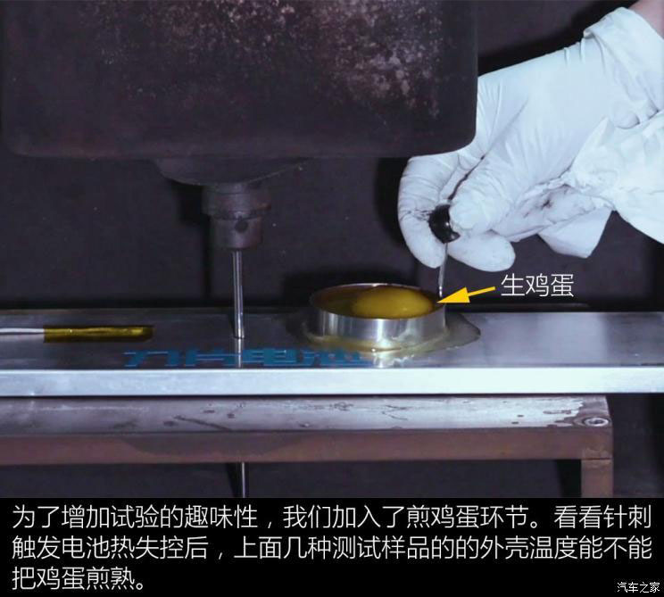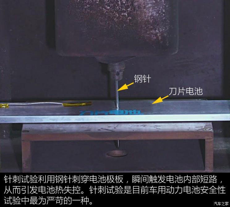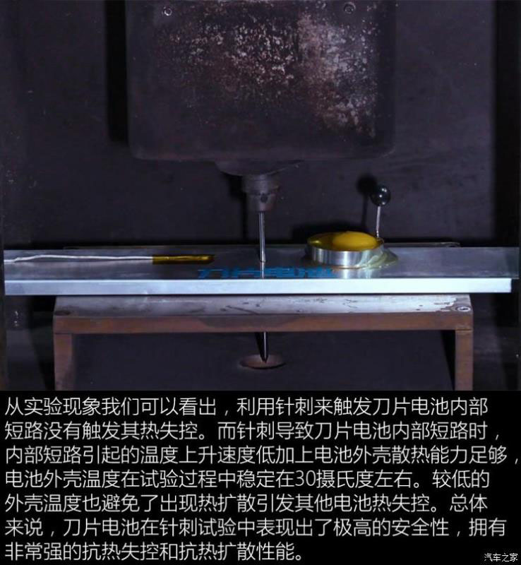 此次針刺試驗(yàn)是在比亞迪的電池實(shí)驗(yàn)室內(nèi)進(jìn)行的,由于實(shí)驗(yàn)室保密和安全原因,我們不能拍攝電池針刺的過(guò)程,所以通過(guò)官方采用實(shí)驗(yàn)室專用的監(jiān)控?cái)z像頭拍攝的視頻進(jìn)行講解。