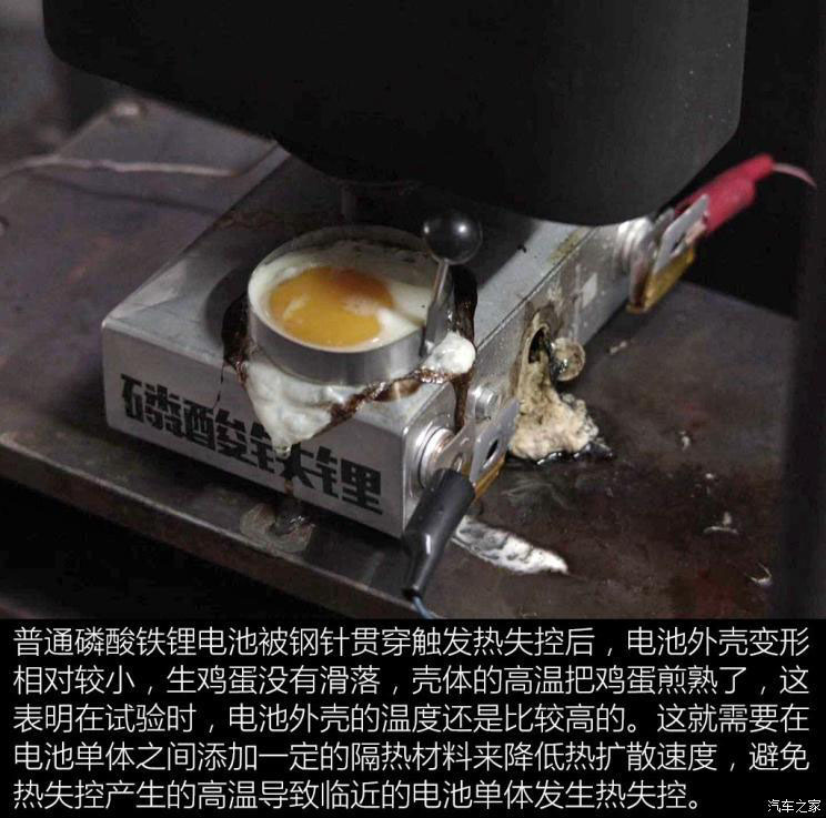 單個(gè)電池?zé)崾Э貢r(shí),其外殼溫度越高,電池間的熱擴(kuò)散會(huì)越迅速,這意味著臨近的電池也會(huì)更快地升溫而相繼觸發(fā)熱失控,導(dǎo)致電池包的安全系數(shù)下降。實(shí)驗(yàn)中的雞蛋如果很快地被煎熟,說(shuō)明電池在受到針刺時(shí)出現(xiàn)明顯的熱失控導(dǎo)致電池溫度急劇上升。