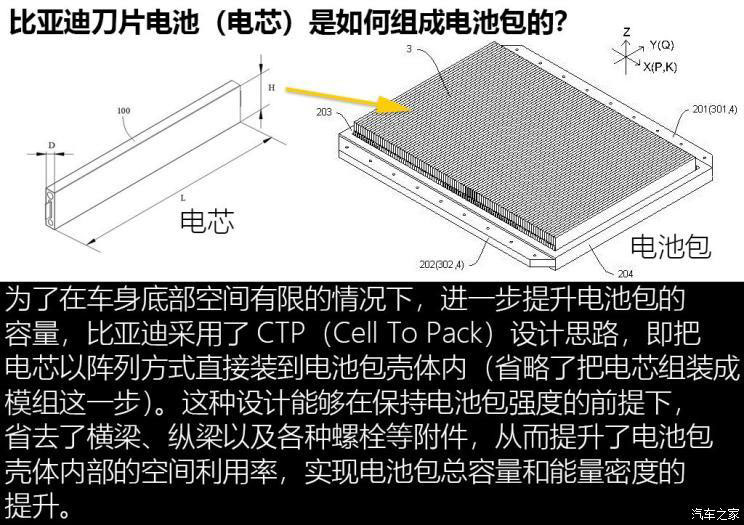 比亞迪通過(guò)CTP設(shè)計(jì)把電池包殼體內(nèi)部的空間利用率由傳統(tǒng)設(shè)計(jì)方式的40-50%提升至60-80%。設(shè)計(jì)的更新?lián)Q代帶來(lái)的直接好處就是在采用原有磷酸鐵鋰電池技術(shù)的前提下較大地提升純電動(dòng)車的續(xù)航里程。上面對(duì)刀片電池進(jìn)行了簡(jiǎn)單的科普,更詳細(xì)的技術(shù)解析可參看下面這篇文章的相關(guān)介紹。