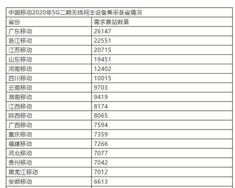3月6日,中國移動(dòng)采購與招標(biāo)網(wǎng)掛出了中國移動(dòng)28個(gè)省份公司的2020年5G二期無線網(wǎng)主設(shè)備集中采購公告,總需求為232143站。這意味著我國最大通信運(yùn)營商中國移動(dòng)2020年5G二期無線網(wǎng)主設(shè)備集中采購正式拉開帷幕,5G建網(wǎng)步伐有序推進(jìn)。