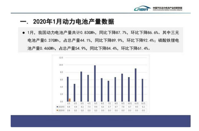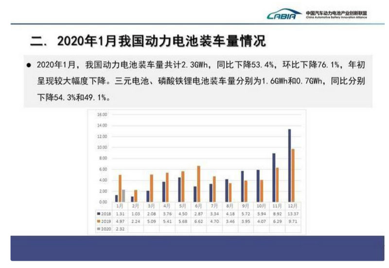 中國(guó)儲(chǔ)能網(wǎng)訊:受新型冠狀病毒疫情影響,中國(guó)汽車工業(yè)協(xié)會(huì)于2020年2月13日召開(kāi)線上月度信息發(fā)布會(huì),對(duì)1月汽車產(chǎn)銷數(shù)據(jù)進(jìn)行了發(fā)布和解讀。動(dòng)力電池行業(yè)由于較多主流企業(yè)開(kāi)工較晚,數(shù)據(jù)統(tǒng)計(jì)工作稍有延后。創(chuàng)新聯(lián)盟秘書(shū)處經(jīng)后續(xù)統(tǒng)計(jì)完善后,現(xiàn)將2020年1月動(dòng)力電池?cái)?shù)據(jù)發(fā)布如下: