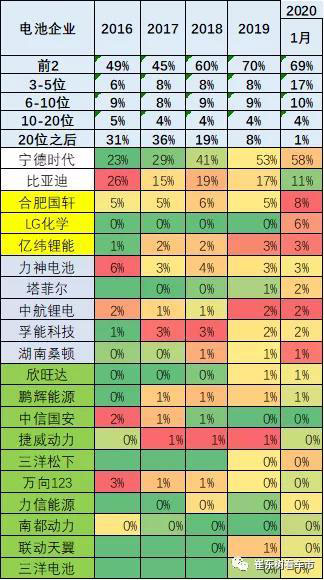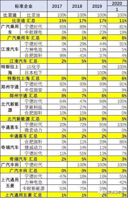 由于前兩位的裝機(jī)增長(zhǎng),3~5位的電池企業(yè)份額相對(duì)下降,從2018年的8%下降到2019年的8%,但松下和LG的電池進(jìn)入較強(qiáng),其他的中間企業(yè)下降幅度目前不大。