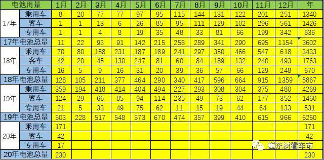 此表的分類(lèi)的電池對(duì)應(yīng)的專(zhuān)用車(chē)車(chē)包含了微客和輕客,微卡和輕卡等各類(lèi)以5字頭的車(chē)型為主。由于磷酸鐵鋰的資源充足,價(jià)格低,加之使用范圍越來(lái)越窄,因此不如三元電池的需求旺盛。。