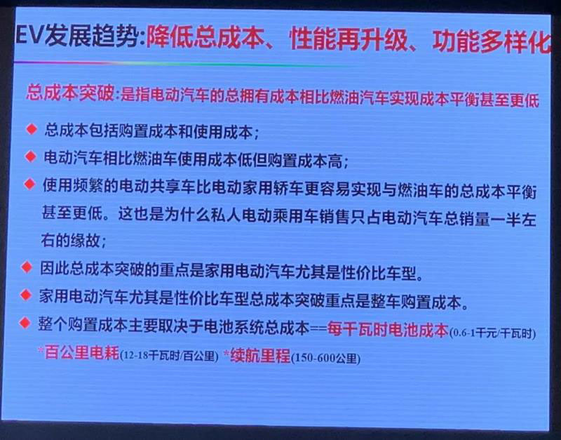 下一步我們要從降低總成本、性能再升級(jí)、功能多樣化等來(lái)看純電動(dòng)的發(fā)展趨勢(shì)。