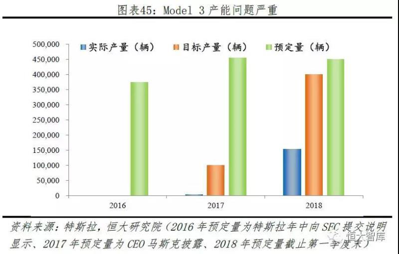 一、產(chǎn)能問(wèn)題。特斯拉的產(chǎn)能一直備受詬病,由于產(chǎn)能不足而導(dǎo)致的生產(chǎn)能力與產(chǎn)品預(yù)定量不匹配、交付延遲嚴(yán)重等。由于Model 3訂單與實(shí)際產(chǎn)量偏離程度最高,特斯拉2017年年底以來(lái)暴露的產(chǎn)能問(wèn)題愈加嚴(yán)重。2017年第三季度Model 3實(shí)際產(chǎn)量?jī)H260臺(tái),遠(yuǎn)低于1500臺(tái)預(yù)期,主要因?yàn)樵缙陔姵爻?jí)工廠Gigafactory 1還未正式量產(chǎn),人工組裝電池包速度慢。電池量產(chǎn)問(wèn)題得到解決后,Model3產(chǎn)能問(wèn)題依然未得到解決,主要因?yàn)楫a(chǎn)線過(guò)于高度自動(dòng)化。針對(duì)生產(chǎn)組裝的GA3產(chǎn)線自動(dòng)化程度高達(dá)90%以上,生產(chǎn)一臺(tái)汽車(chē)匹配數(shù)百條機(jī)器設(shè)備,產(chǎn)線過(guò)于密集,機(jī)器設(shè)備過(guò)多導(dǎo)致作業(yè)時(shí)間沖突、效率和靈活性下降,激增的維護(hù)成本抵消掉自動(dòng)化帶來(lái)的成本優(yōu)勢(shì)。因此,特斯拉曾于2018年2月、4月停產(chǎn)維護(hù)GA3產(chǎn)線,降低自動(dòng)化程度并加入更多人手,此外還開(kāi)設(shè)帳篷產(chǎn)線GA4增加生產(chǎn)速度。2018年6月Model 3達(dá)到目標(biāo)周產(chǎn)能5000輛,目前周產(chǎn)量約7000輛。即便如此,特斯拉按時(shí)完成交付任務(wù)依然艱難,按照2017年年底Model 3約45.5萬(wàn)訂單、2018年實(shí)際交付14.7萬(wàn)計(jì)算,不考慮新增訂單,剩余訂單還需1年左右時(shí)間完成。