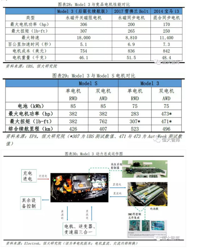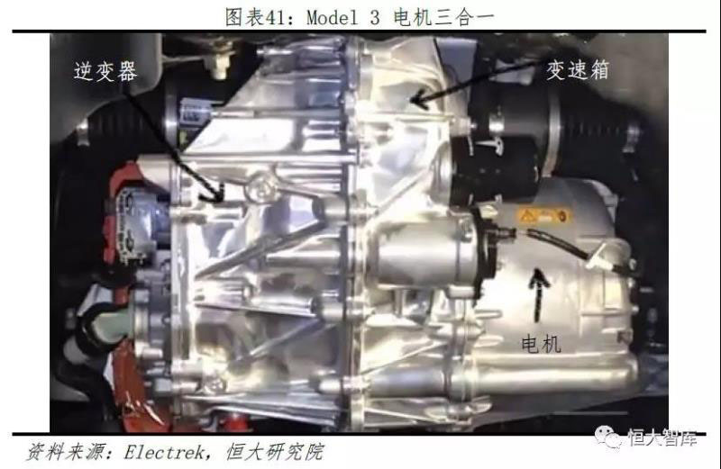 動(dòng)力總成集成優(yōu)化內(nèi)部結(jié)構(gòu),有利縮減車(chē)型降低成本,形成價(jià)格競(jìng)爭(zhēng)力。特斯拉一直保持包括電池包、BMS、冷卻系統(tǒng)、電機(jī)等動(dòng)力總成高度集成的特點(diǎn)。例如,無(wú)論是感應(yīng)電機(jī)還是永磁開(kāi)關(guān)磁阻電機(jī),基本結(jié)構(gòu)都為變速箱、逆變器和電機(jī)三體合一的結(jié)構(gòu)。對(duì)比來(lái)看,每次推出新款車(chē)型,特斯拉都盡可能在原基礎(chǔ)上集成升級(jí)。對(duì)比Model S/X,Model 3的車(chē)體減小約20%、價(jià)格降低約50%,為保證整車(chē)性能,特斯拉加入更多系統(tǒng)芯片來(lái)控制部件協(xié)調(diào)運(yùn)作,并且將例如Model3的冷水機(jī)、電動(dòng)閥、液冷罐等零部件集成為冷卻液儲(chǔ)閥罐,即Super Bottle,通過(guò)算法調(diào)節(jié)內(nèi)部線路串并聯(lián)結(jié)構(gòu),減少例如PTC加熱器等零部件。