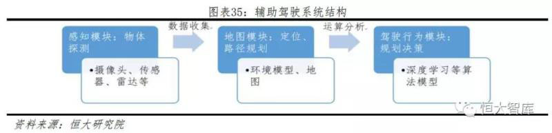 汽車(chē)輔助駕駛系統(tǒng)由軟硬件組合構(gòu)成,從結(jié)構(gòu)框架來(lái)看,主要分為感知模塊、地圖模塊、駕駛行為決策模塊。從流程來(lái)看,感知模塊通過(guò)雷達(dá)、傳感器、攝像頭等硬件,收集周?chē)h(huán)境探測(cè)到的物體數(shù)據(jù),地圖模塊提供定位和全局路徑規(guī)劃,數(shù)據(jù)共同傳輸?shù)今{駛行為模塊,為駕駛方案提供信息支持,最后決策模塊控制車(chē)體轉(zhuǎn)向、加速等實(shí)施行為。