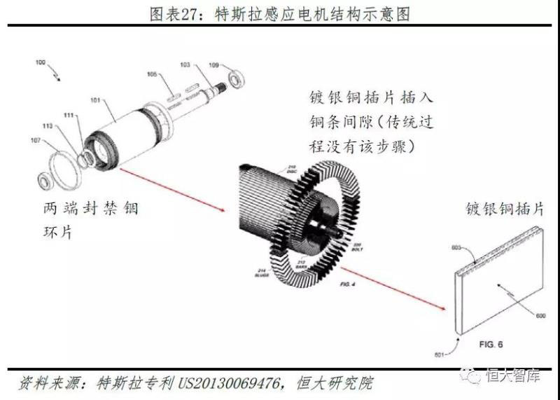 為提高傳統(tǒng)感應(yīng)電機(jī)功率和運(yùn)作效率,特斯拉采取一系列包括設(shè)計(jì)對(duì)應(yīng)沖片、提高扭矩、冷卻系統(tǒng)等手段,其中,最為創(chuàng)新的是感應(yīng)電機(jī)銅芯轉(zhuǎn)子專(zhuān)利技術(shù)(專(zhuān)利號(hào)US20130069476)。
