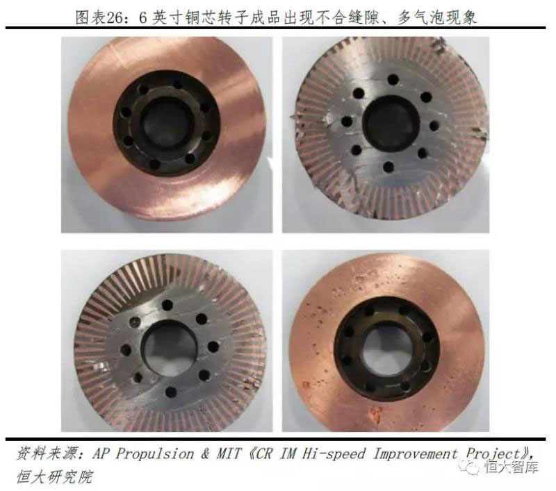熔點(diǎn)高、大尺寸制造難度等制約銅芯電機(jī)發(fā)展。對(duì)比鋁(熔點(diǎn)660.3℃),銅(熔點(diǎn)1083.4℃)過(guò)高熔點(diǎn)增加制造難度,AC Propulsion與MIT的一項(xiàng)實(shí)驗(yàn)表明,一旦電機(jī)體積過(guò)大,采用銅材料的電機(jī)成品極易造成氣泡過(guò)多、難以鑲嵌等問(wèn)題。