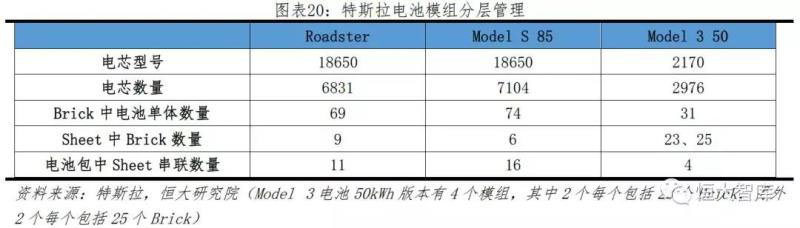 二、串并聯(lián)組合、分層管理模式優(yōu)化模組結(jié)構(gòu),提高電池充放電能力。特斯拉電池采用特有的串并聯(lián)方式,按照“單體電池-brick-sheet-pack”順序進(jìn)行分層管理。例如,特斯拉將Roadster電池系統(tǒng)的6831節(jié)電池分成不同的子單元(4個(gè)模組中2個(gè)為23Brick/module,另外2個(gè)為25Brick/module,即2*23*31+2*25*31)進(jìn)行并聯(lián)和串聯(lián),多組串聯(lián)和平板的設(shè)計(jì),極大增加電池鋪設(shè)數(shù)量和使用效率,從而提高整車(chē)動(dòng)力性能和續(xù)航里程。