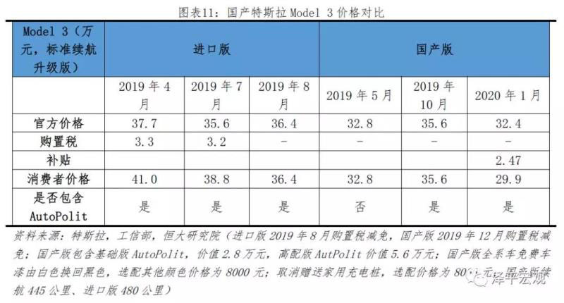 國(guó)產(chǎn)Model 3以低價(jià)策略攪動(dòng)內(nèi)地新能源汽車(chē)市場(chǎng)。作為國(guó)際化的重要戰(zhàn)略之一,特斯拉高度重視內(nèi)地新能源汽車(chē)市場(chǎng),并于上海自建超級(jí)工廠,由于國(guó)內(nèi)人工費(fèi)用、固定資產(chǎn)費(fèi)用較低,且上海市政府以貸款優(yōu)惠政策吸引,特斯拉上海工廠的資本開(kāi)支較美國(guó)工廠低65%。國(guó)產(chǎn)特斯拉將降價(jià)切入中高端市場(chǎng),入門(mén)級(jí)Model 3價(jià)格低于30萬(wàn)元,并于2019年底完成首批員工交付。此次調(diào)價(jià)由三方面組成,第一方面,1月3日特斯拉官方宣布準(zhǔn)續(xù)航升級(jí)版從35.58萬(wàn)元下調(diào)至32.38萬(wàn)元,降價(jià)幅度高達(dá)3.2萬(wàn)元。第二方面,于2019年12月6月入選第11批《新能源汽車(chē)推廣應(yīng)用推薦車(chē)型目錄》,享受補(bǔ)貼24,750元/每輛。第三方面,于12月27日入選第29批《免征車(chē)輛購(gòu)置稅的新能源汽車(chē)車(chē)型目錄》,享受購(gòu)置稅減免。三方面因素促成Model3入門(mén)價(jià)格從35.58萬(wàn)元下降至29.9萬(wàn)元,對(duì)比2019年4月進(jìn)口版本,降價(jià)幅度高達(dá)38.8%。
