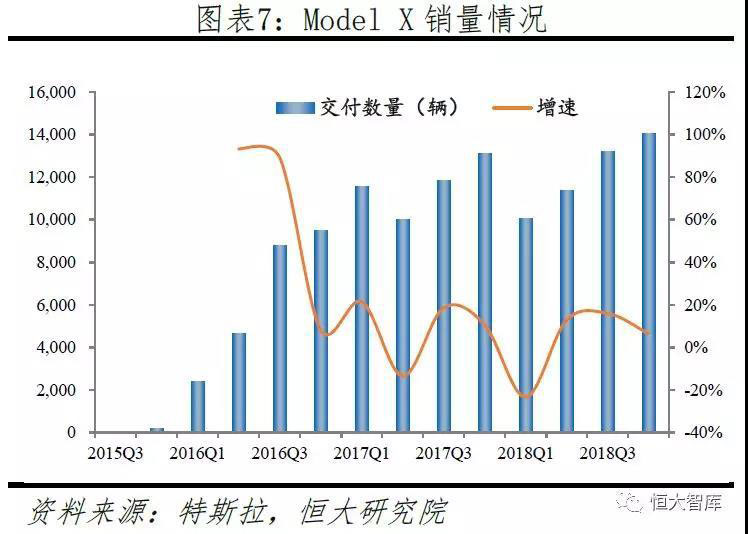 2015年第三季度,搭載鷹翼門(mén)豪華SUV Model X正式交付。相較Model S,Model X在性能上并沒(méi)有太多的創(chuàng)新,兩者的用戶(hù)定位與價(jià)格也相仿,均屬“Master Plan”第二階段計(jì)劃。Model X主要為滿(mǎn)足需求更大的豪華SUV市場(chǎng),并豐富產(chǎn)品線。較ModelS銷(xiāo)量呈穩(wěn)定趨勢(shì),ModelX依舊保持增長(zhǎng),目前全球總銷(xiāo)量超12萬(wàn)輛,在美國(guó)大中型豪華SUV市場(chǎng)占有率與奔馳GLE、寶馬X5等競(jìng)品接近。
