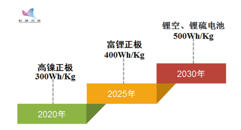 國(guó)務(wù)院頒發(fā)的《中國(guó)制造2025》提出2020 年動(dòng)力電池能量密度要達(dá)到 300 Wh/Kg,2025 年達(dá)到 400 Wh/Kg,2030 年能量密度達(dá)到 500 Wh/kg。目前量產(chǎn)動(dòng)力電池單體能量密度在 230±20 Wh/Kg,根據(jù)《中國(guó)制造2025》的要求,結(jié)合現(xiàn)在的技術(shù)路線,我國(guó)的科技工作者提出了使用高鎳正極+準(zhǔn)固態(tài)電解質(zhì)+硅碳負(fù)極實(shí)現(xiàn) 300 Wh/Kg的目標(biāo);2025 年使用富鋰正極+全固態(tài)電解質(zhì)+硅碳/鋰金屬負(fù)極電池實(shí)現(xiàn) 400 Wh/Kg的目標(biāo),2030年使用鋰空氣電池、鋰硫電池達(dá)到500 Wh/Kg的目標(biāo)。