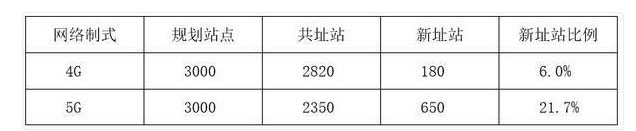 表2 4G/5G新址站建設(shè)比例