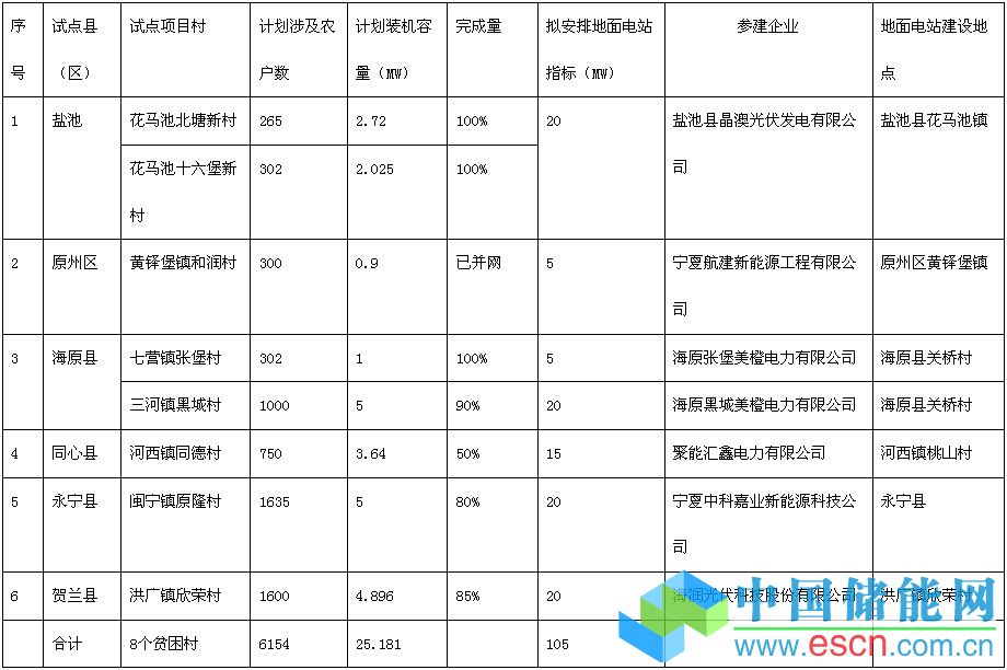 根據(jù)《國家能源局關(guān)于下達(dá)2015年光伏發(fā)電建設(shè)實(shí)施方案的通知》(國能新能[2015]73號)和《自治區(qū)扶貧辦自治區(qū)發(fā)展改革委關(guān)于組織開展2015年度光伏扶貧工程試點(diǎn)工作的通知》(寧扶貧辦發(fā)[2015]84號)文件精神。2015年12月,我委配合自治區(qū)扶貧辦,對6個試點(diǎn)縣(區(qū))項(xiàng)目建設(shè)完成率達(dá)到50%以上,經(jīng)過初步驗(yàn)收合格的8個試點(diǎn)村的2.5181萬千瓦屋頂扶貧光伏電站,擬按照1:4的比例配置地面電站指標(biāo)。配置總規(guī)模10.5萬千瓦。有關(guān)項(xiàng)目情況公告如下:
