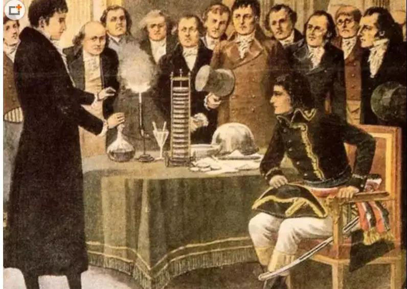 不過,這位解剖學家弄錯了。與他同時代的意大利物理學家伏特(是的,電壓單位伏特,就是為了紀念他。有的譯為:伏打),經(jīng)過多次實驗確認,青蛙的肌肉之所以能產(chǎn)生電流,是肌肉中某種液體在起作用。1799年,伏特實驗發(fā)現(xiàn),兩種金屬片中,只要有一種與溶液發(fā)生了化學反應,金屬片之間就能夠產(chǎn)生電流。伏特制成了世界上第一個電池——“伏特電堆”。