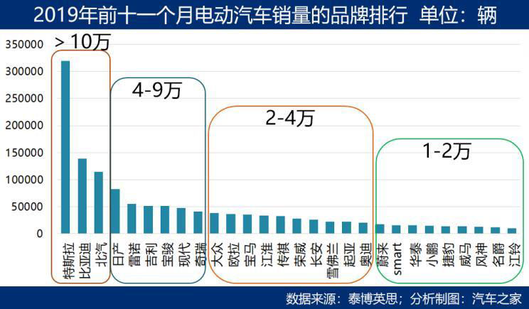 特斯拉無疑已經(jīng)晉升世界電動(dòng)車?yán)洗?,今年前十一個(gè)月全球累計(jì)銷售31.9萬輛,而排在第二的是中國品牌比亞迪,純電動(dòng)車型賣了13.9萬輛。與10萬輛級(jí)陣營中的比亞迪和北汽新能源今年銷量增長不力迥異,特斯拉今年簡直開了掛,橫掃全球電動(dòng)車市場。
