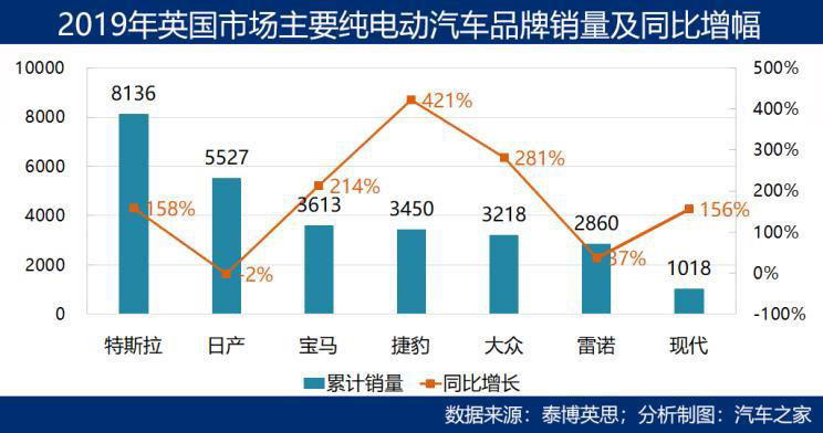 從各大品牌表現(xiàn)看,沒有意外,特斯拉又是量速齊優(yōu)。而且,特斯拉Model 3是主要的拉動(dòng)車型。Model 3今年7月份進(jìn)入英國市場,5個(gè)月累計(jì)銷量近7000輛,與此同時(shí),Model S和Model X的銷量都較前兩年有所減少。英國本土品牌捷豹I-PEACE因去年6月上市,今年的累計(jì)銷量同比增幅必然高企。