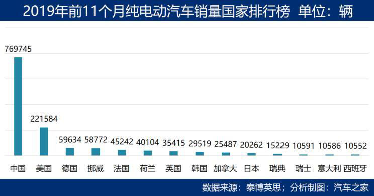 今年前十一個(gè)月,全球純電動(dòng)汽車?yán)塾?jì)銷量的同比增幅是26%,剔除中國市場以后,同比增幅增加為36%。2019年是中國電動(dòng)汽車補(bǔ)貼退出幅度最大的一年,本地市場因此在下半年出現(xiàn)了五連跌,沒有高額補(bǔ)貼護(hù)體的中國電動(dòng)車,放慢了腳步。