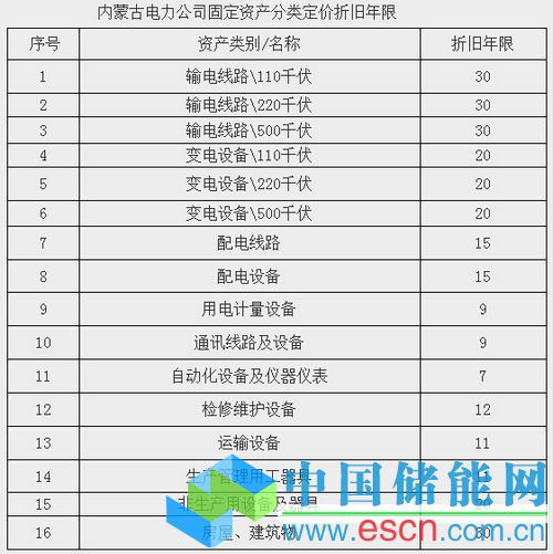 內(nèi)蒙古電力公司固定資產(chǎn)分類定價折舊年限