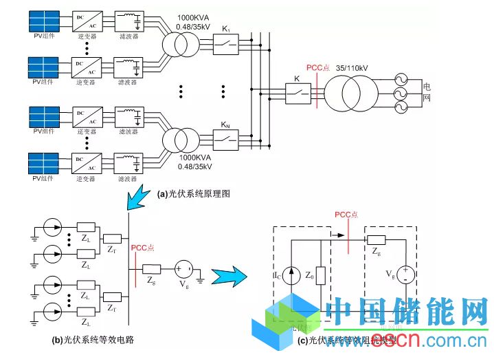 圖3 光伏系統(tǒng)原理圖及等效阻抗模型