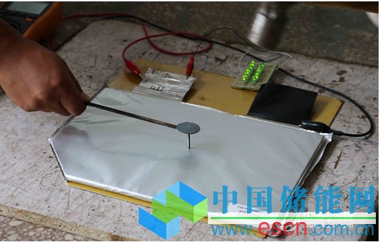威海東生能源科技有限公司工作人員向中國電池網(wǎng)演示電池穿刺實驗現(xiàn)場