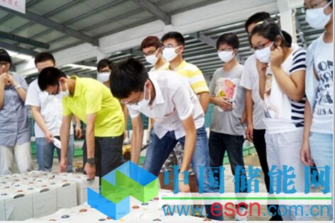 隨后,準大學生們參觀了華富的生產(chǎn)車間,因為之前從未接觸過電池制造,他們表現(xiàn)出了強烈的好奇心,剛進電池鑄片車間,準大學生們就被眼前片狀的電池吸引住了?!斑@是什么?干什么用?”一路下來這樣的問題不絕于耳,半天參觀下來,準大學生們都很興奮。于洋說:“沒想到生產(chǎn)一個電池要這么多工序,車間里的工人們真的不容易,一直戴著口罩工作,呼吸肯定不暢,明天就看我們的了?!?