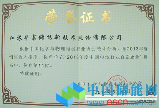 中國儲能網訊:5月29日-30日,由中國化學與物理電源行業(yè)協會主辦的“2014年中國電池行業(yè)市場年會暨《電池中國》網站上線新聞發(fā)布會”在北京召開。與會專家通過電池產業(yè)發(fā)展現狀及趨勢的分析,為產業(yè)健康發(fā)展和理性投資提供指導。會議還發(fā)布了“2013年中國電池行業(yè)百強企業(yè)排名”結果,我公司以儲能電池及鋰離子電池總量位居全國同行業(yè)第14位。