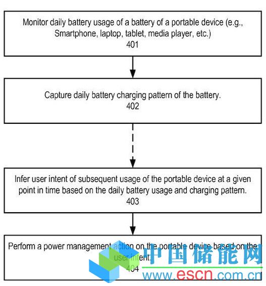 這項(xiàng)專利題為“基于電池使用率級別和充電趨勢來推斷用戶意圖”,文件詳細(xì)介紹了一種能夠在移動設(shè)備上監(jiān)控電池充/放電周期并獲取相關(guān)信息來預(yù)測用戶在特定任何時間內(nèi)操作意圖的方法,移動設(shè)備可以利用這些預(yù)測數(shù)據(jù)來改變各種參數(shù),如屏幕亮度、CPU 時鐘速度等,從而延長電池壽命或者提供最大的處理能力。