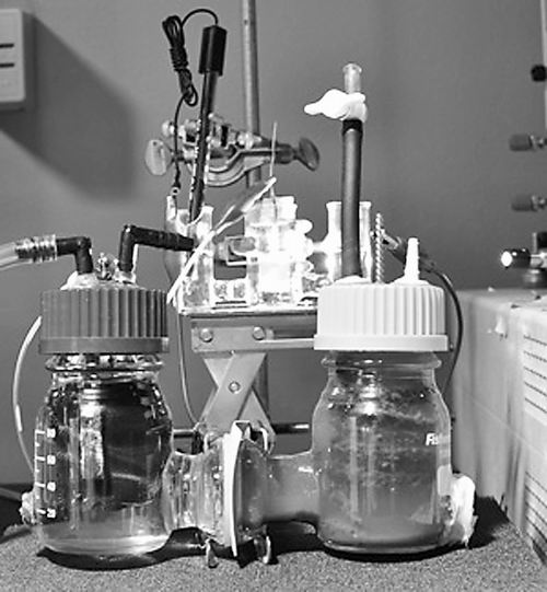 這一新型的混合裝置結(jié)合了微生物燃料電池(MFC)和一個被稱為光電化學(xué)電池(PEC)的太陽能電池。裝置首先將太陽能轉(zhuǎn)化為電能,然后將電子傳遞給污水中的微生物,使其有足夠的能量分解污水中的有機物。其中一些細菌在消耗有機物的同時產(chǎn)生電子,這些電子通過導(dǎo)線被傳回PEC以協(xié)助太陽能電池供電,同時可以將水電解生成氫氣和氧氣。