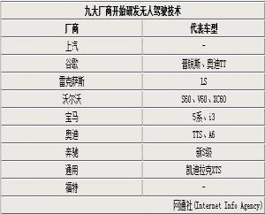 自動駕駛技術(shù)正吸引著各大車企著力研究,其中不乏著名車企奔馳、寶馬、奧迪、沃爾沃、雷克薩斯等。這些車企早已開始研究,并且研發(fā)進程十分迅速,不少車型已接近量產(chǎn)。沃爾沃對自動駕駛的研發(fā)始終未停止過,目前仍處于基礎(chǔ)系統(tǒng)與配套設(shè)施的層次,根據(jù)沃爾沃的計劃未來旗下全系車型均將搭載“自動駕駛系統(tǒng)”;而奧迪是繼谷歌之后第二家在美國內(nèi)華達州獲得自動駕駛車型測試許可證的廠商,也是第一家獲此許可的汽車制造商;奔馳在研發(fā)自動駕駛汽車方面一直處于獨立的研究,在今年上市的奔馳全新S級轎車就已經(jīng)搭載了其最新的“自動駕駛系統(tǒng)”。