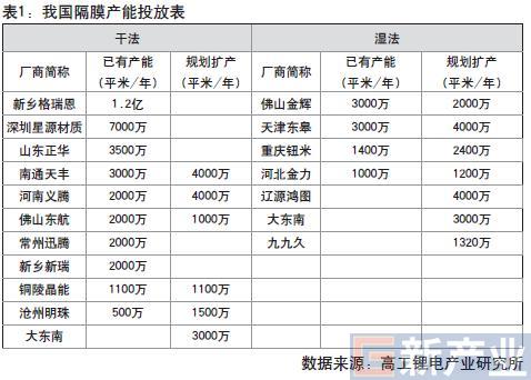 技術(shù)路線截至2012年7月,國內(nèi)隔膜廠商產(chǎn)能約為4.3億平方米/年,預(yù)計(jì)到2013年年底產(chǎn)能有望達(dá)到7.6億平方米/年。