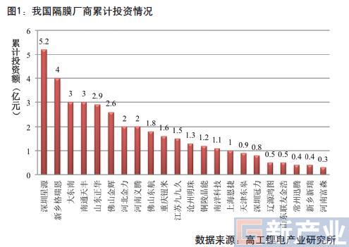 根據(jù)高工鋰電產(chǎn)業(yè)研究所統(tǒng)計(jì),截至2012年8月,我國隔膜廠商投資額約38億元,其中包括生產(chǎn)設(shè)備投入、廠房建設(shè)和前期研發(fā)投入等等。