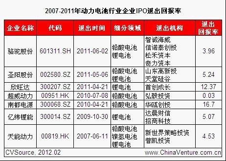 表42007-2011年動力電池行業(yè)企業(yè)IPO退出回報率