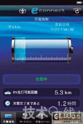 充電只支持普通充電,用AC200V電源約需90分鐘,用AC100V電源約需180分可充滿電。配備了可根據(jù)出發(fā)時間進(jìn)行充電和利用夜間電力充電的定時功能。此外,在所有車型上標(biāo)配了通過智能手機(jī)獲得電池剩余電量和充電站等信息的新服務(wù)“PHV駕駛支援”(圖4)。