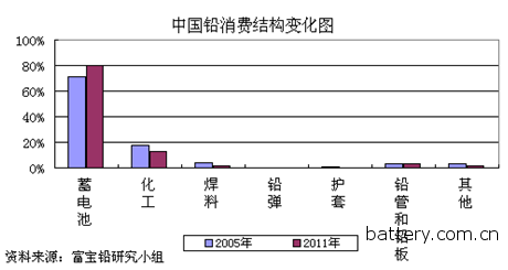 圖2:中國(guó)鉛消費(fèi)結(jié)構(gòu)變化圖