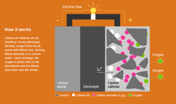 中國儲能網(wǎng)訊:鋰空氣電池使用催化空氣陰極將氧氣轉(zhuǎn)化成過氧化鋰,一種電解質(zhì),和鋰陽極。所以在同等重量下,鋰空氣電池的儲電量是鋰離子電池的10倍,而實現(xiàn)鋰空氣電池的這種潛能卻是一項科學(xué)難題。IBM和它的伙伴一起開展了一項為期數(shù)年的研究,該研究致力于探索可充電鋰空氣系統(tǒng)的商業(yè)化可行性;項目被命名為Battery500project,意蘊希望電池一次充電能讓電動汽車跑上500英里;如果把該指標(biāo)折算成電池容量,這塊車用動力蓄電池組大約需要125kWh左右的能量。