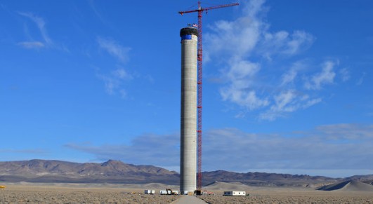 建設(shè)中的太陽(yáng)能集熱塔。(自《紐約時(shí)報(bào)》)