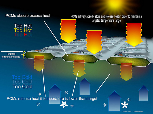 當(dāng)然,相變材料并不是都要這樣高科技。我們一直在使用冰,這種相變材料在0 °C融化,可給東西制冷,這已經(jīng)有幾千年了。但是,先進(jìn)的材料科學(xué),以及高昂的能源成本,正在促進(jìn)開發(fā)一些相變材料,這些材料可作用于不同溫度,以給人們和貨物制冷或加溫,或儲(chǔ)存能量。