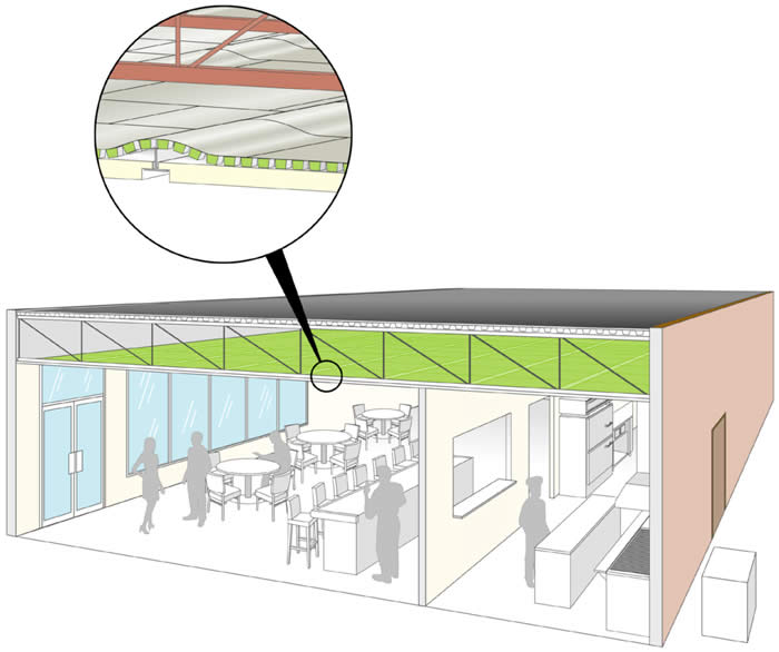 相變材料封裝在天花板內(nèi),來(lái)源:相變能源方案公司