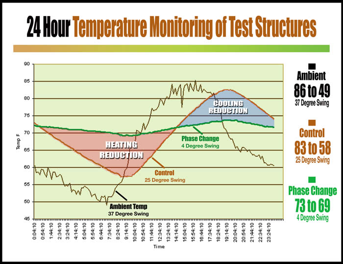 采用相變材料的房間,晝夜24小時(shí)溫度測(cè)定,來(lái)源:相變能源方案公司