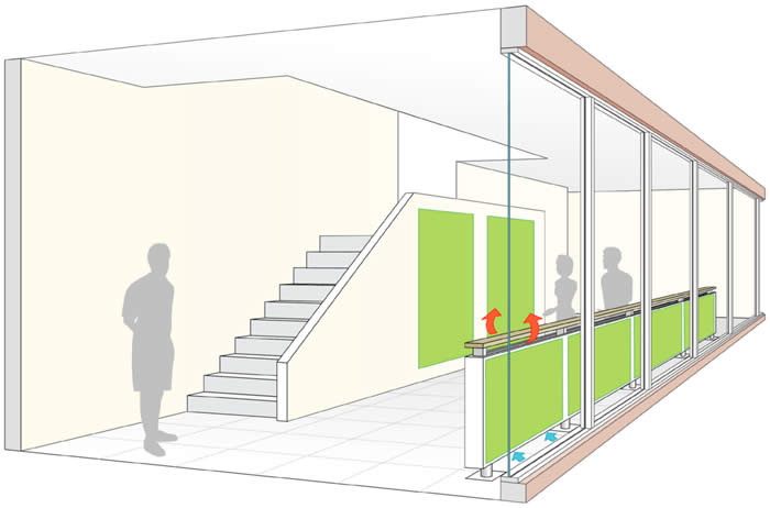 這不是設(shè)計(jì)上有缺陷:封裝在墻壁和天花板內(nèi)的,是一種凝膠,這種凝膠在夜間凝固,在白天會(huì)變暖融化。這被稱為相變材料(PCM:phase change material),這種凝膠有助于減少所需能量,給大廈辦公用房制冷,計(jì)劃讓分子工程學(xué)系搬進(jìn)去,本月完工后就搬入,可減少能耗98%。