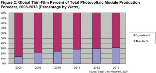 盡管去年多晶硅的合同價(jià)格下挫逾50%,但薄膜太陽(yáng)能模塊市場(chǎng)前景依然樂(lè)觀。iSuppli公司預(yù)測(cè),到2013年,薄膜光伏太陽(yáng)能模塊將占到整體模塊市場(chǎng)的30%以上,2008年該比例為14%。