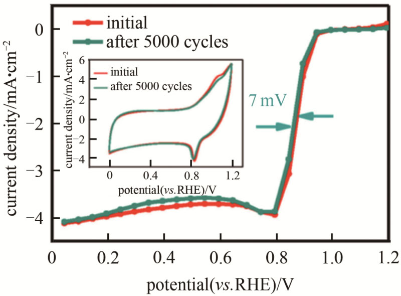 圖6 Co@hNCTs-800經(jīng)過5000次循環(huán)后的LSV和CV曲線