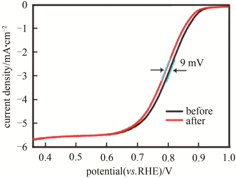 圖5 NiCo2O4@N-CNWs經(jīng)過5000次循環(huán)后的LSV圖