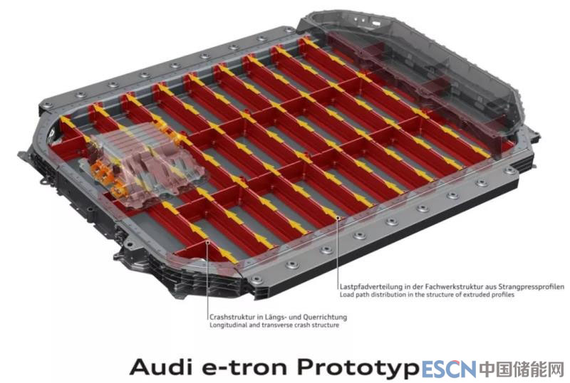 Audi的電池托盤設(shè)計(jì),就是很好的案例。黃色箭頭是受力的狀態(tài),內(nèi)部通過均勻的框架,讓應(yīng)力得到合理的釋放,同時(shí)與外部框架吊耳孔對(duì)應(yīng),讓內(nèi)外結(jié)構(gòu)渾然一體。同時(shí),也能抵御來自外部碰撞的破壞。